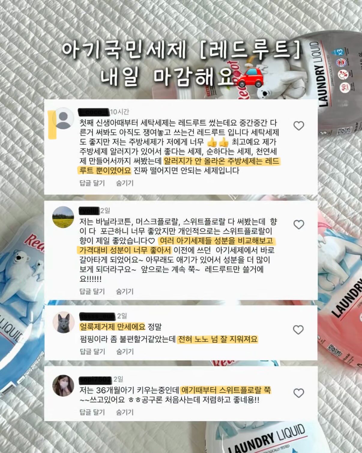 세탁세제 3개 + 유연제 3개 세트 공구ddohuni_mom팔로워 12.9만|약 4시간 전세탁세제 3개 + 유연제 3개 세트내일 오픈 예정홈리빙 > 생활용품|4/19 (일) 오픈AI가 정리한 정보예요. 실수가 있을 수 있어요원본 게시물인스타그램에서 보기#할인#유연제#공동구매#레드루트#세탁세제출처 @ddohuni_mom구매하러 가기