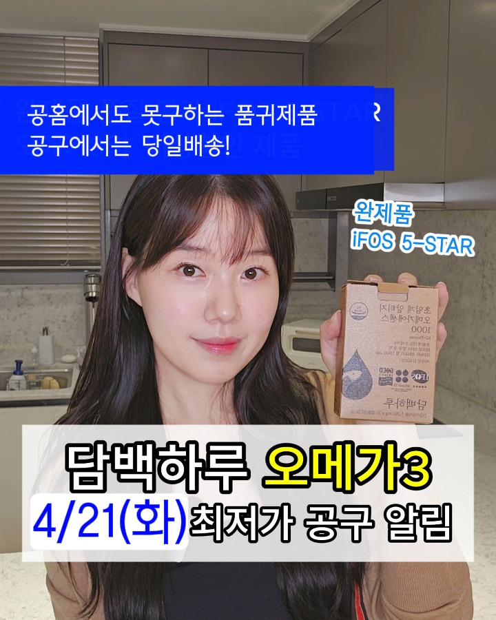담백하루 초임계알티지오메가에센스1000 공구lilly_yaksa팔로워 24.1만|약 9시간 전담백하루 초임계알티지오메가에센스10002일 후 오픈 예정식품 > 건강식품|4/21 (화) 오픈AI가 정리한 정보예요. 실수가 있을 수 있어요원본 게시물인스타그램에서 보기#담백하루오메가3#오메가3#공동구매#비타민D출처 @lilly_yaksa구매하러 가기