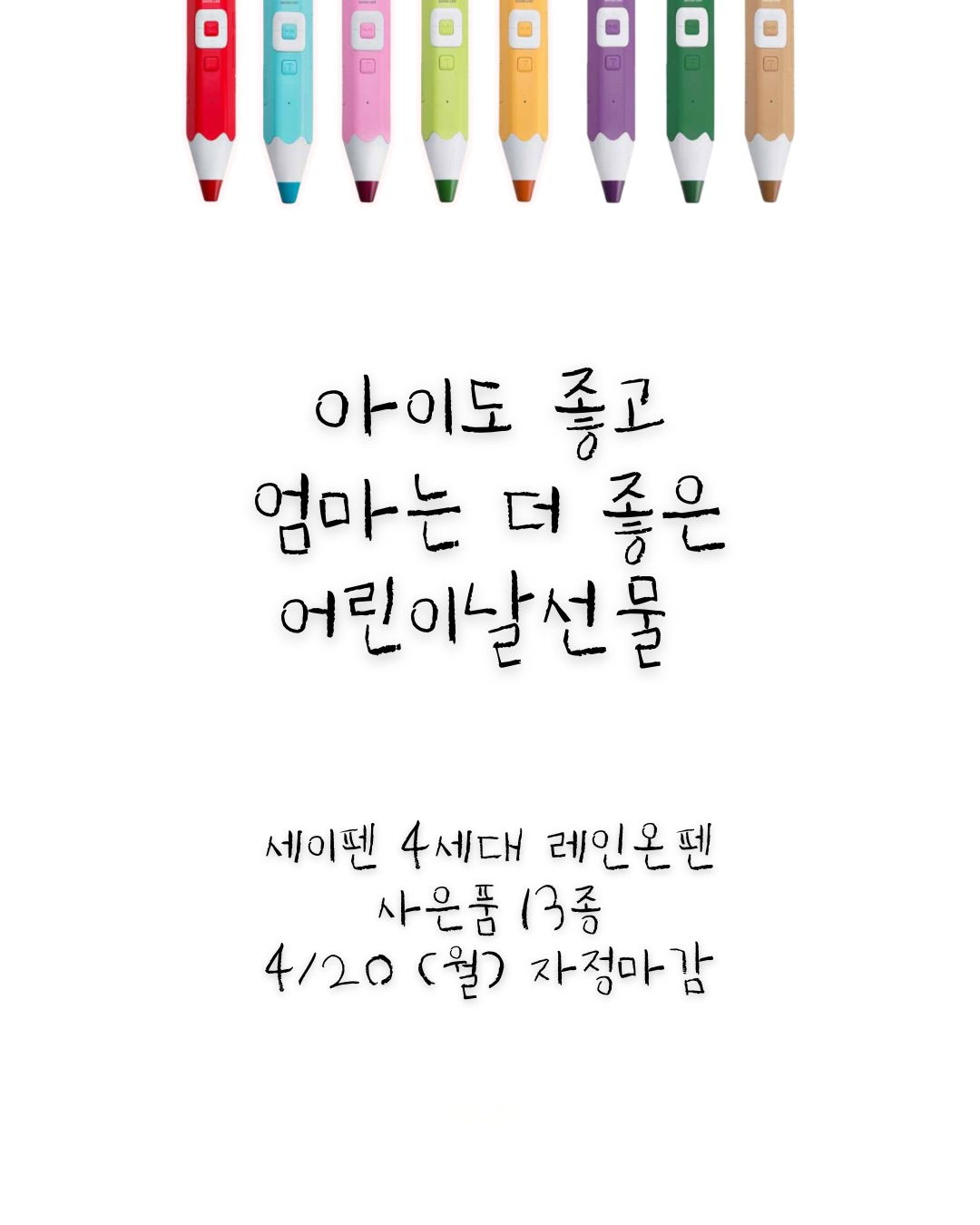세이펜 공구100seo_princess팔로워 5.7천|약 6시간 전세이펜종료키즈 > 육아용품|4/19 (일) ~ 4/20 (월)AI가 정리한 정보예요. 실수가 있을 수 있어요원본 게시물인스타그램에서 보기#세이펜공구#세이펜#레인온펜출처 @100seo_princess구매하러 가기