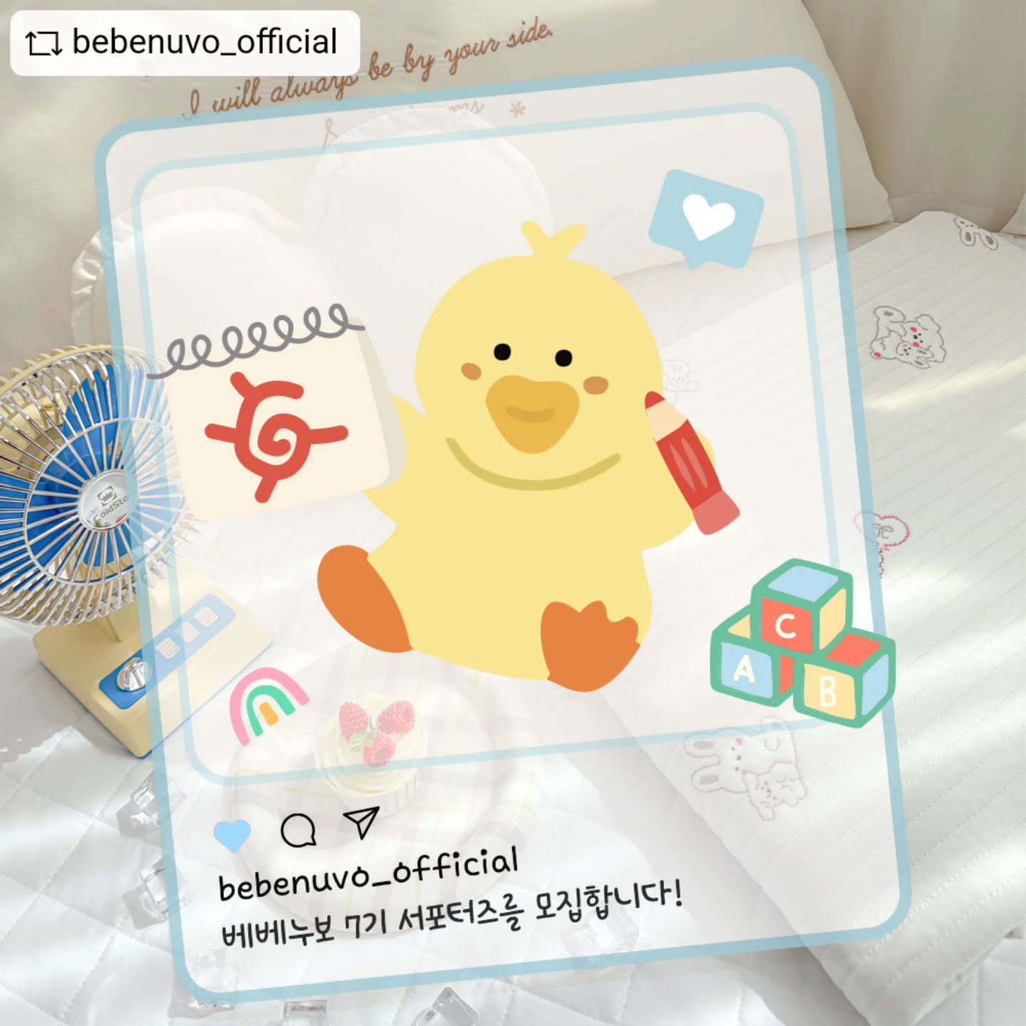 베베누보 서포터즈 7기 모집 공구woovely_jmk팔로워 7.4천|1일 전베베누보 서포터즈 7기 모집2일 전 오픈키즈 > 육아용품|4/20 (월) ~ 5/4 (월)AI가 정리한 정보예요. 실수가 있을 수 있어요원본 게시물인스타그램에서 보기#서포터즈#베베누보#여름필수템#냉감침구#래쉬가드출처 @woovely_jmk구매하러 가기