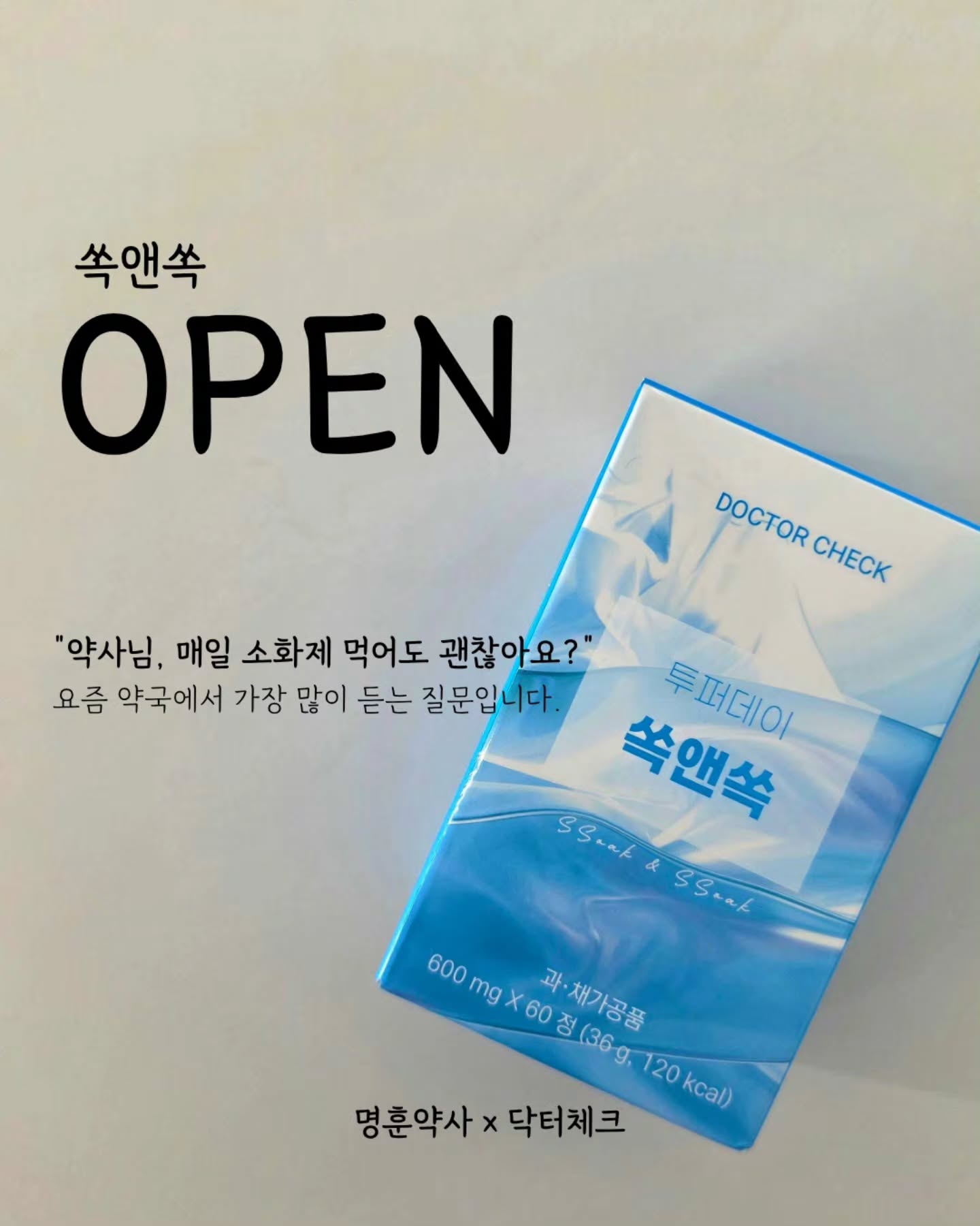 투퍼데이 쏙앤쏙 공구yaksa_mh팔로워 4.9만|3일 전투퍼데이 쏙앤쏙5일 전 오픈식품 > 건강식품|4/21 (화) ~ 4/27 (월)AI가 정리한 정보예요. 실수가 있을 수 있어요원본 게시물인스타그램에서 보기#닥터체크#건강#공동구매#위장건강#영양제출처 @yaksa_mh구매하러 가기