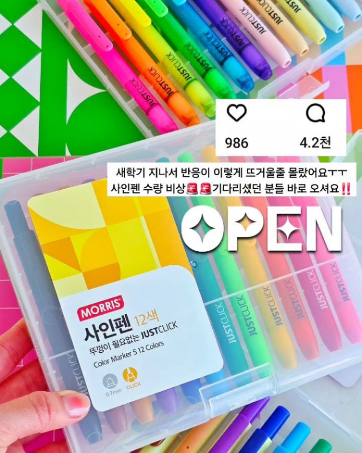 모리스 원터치펜 공구sua_play팔로워 15.5만|약 3시간 전모리스 원터치펜오늘 오픈4/24 (금) ~ 4/27 (월)AI가 정리한 정보예요. 실수가 있을 수 있어요원본 게시물인스타그램에서 보기#모리스#사인펜#원터치펜#학용품#어린이날선물출처 @sua_play구매하러 가기