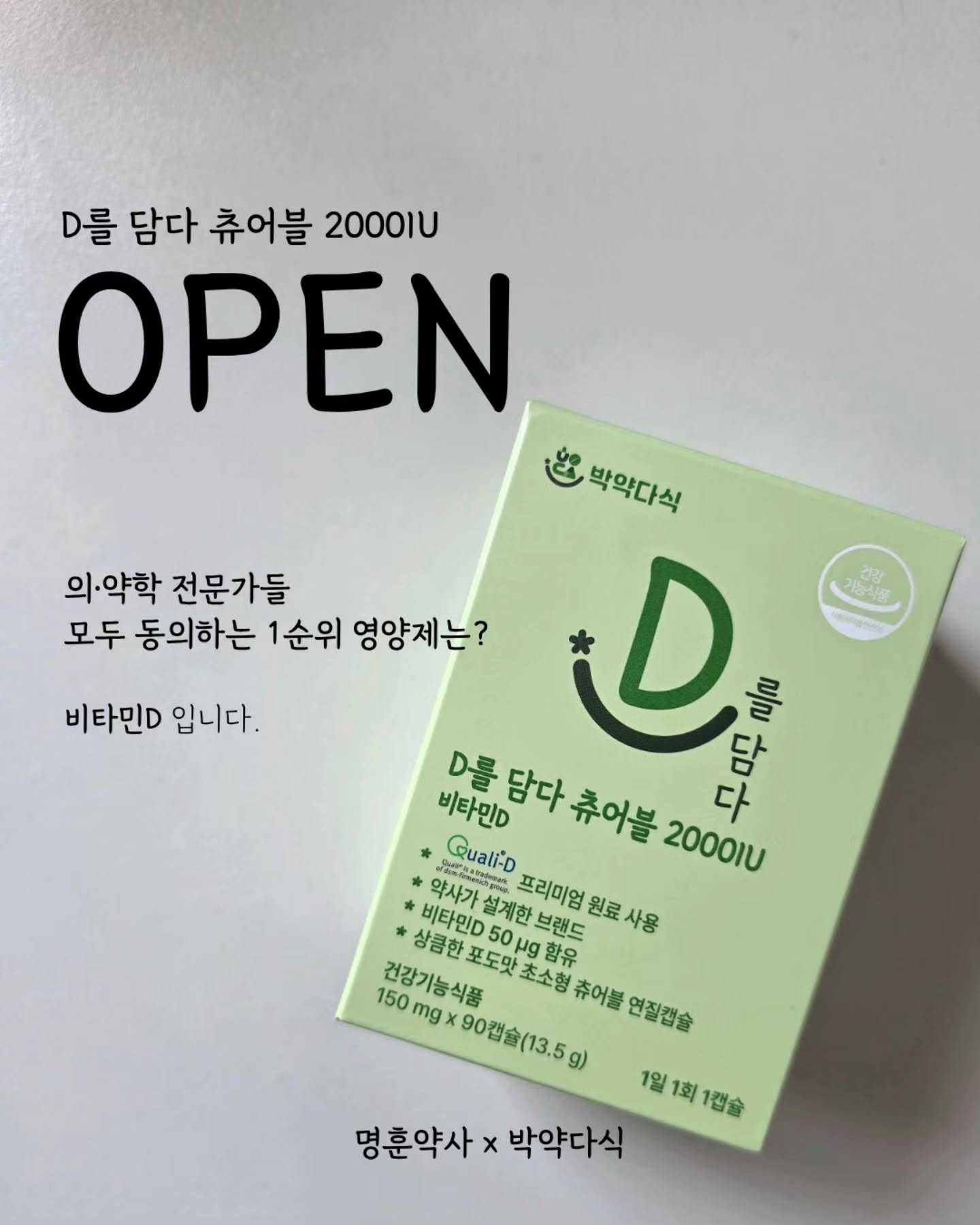 비타민D 공구yaksa_mh팔로워 4.9만|약 2시간 전비타민D오늘 오픈식품 > 건강식품|4/24 (금) ~ 4/30 (목)AI가 정리한 정보예요. 실수가 있을 수 있어요원본 게시물인스타그램에서 보기#비타민D#영양제#건강식품#필수영양소#체크리스트출처 @yaksa_mh구매하러 가기