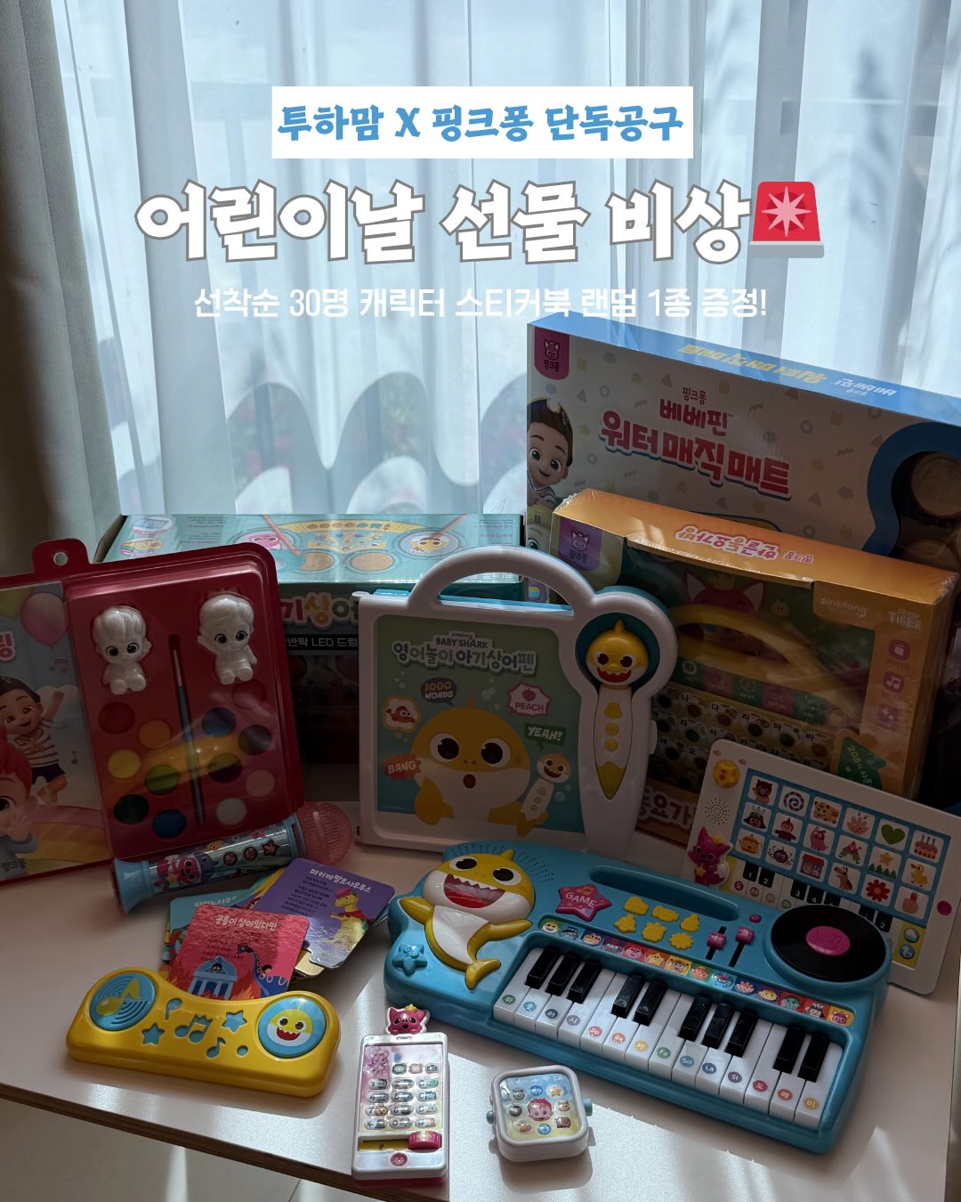 핑크퐁 어린이날 대잔치 공구rachel_.rr팔로워 7.4만|약 17시간 전핑크퐁 어린이날 대잔치어제 오픈키즈 > 장난감/완구|4/27 (월) ~ 4/30 (목)AI가 정리한 정보예요. 실수가 있을 수 있어요원본 게시물인스타그램에서 보기#핑크퐁#아기상어#어린이놀이#완구#유아용품출처 @rachel_.rr구매하러 가기